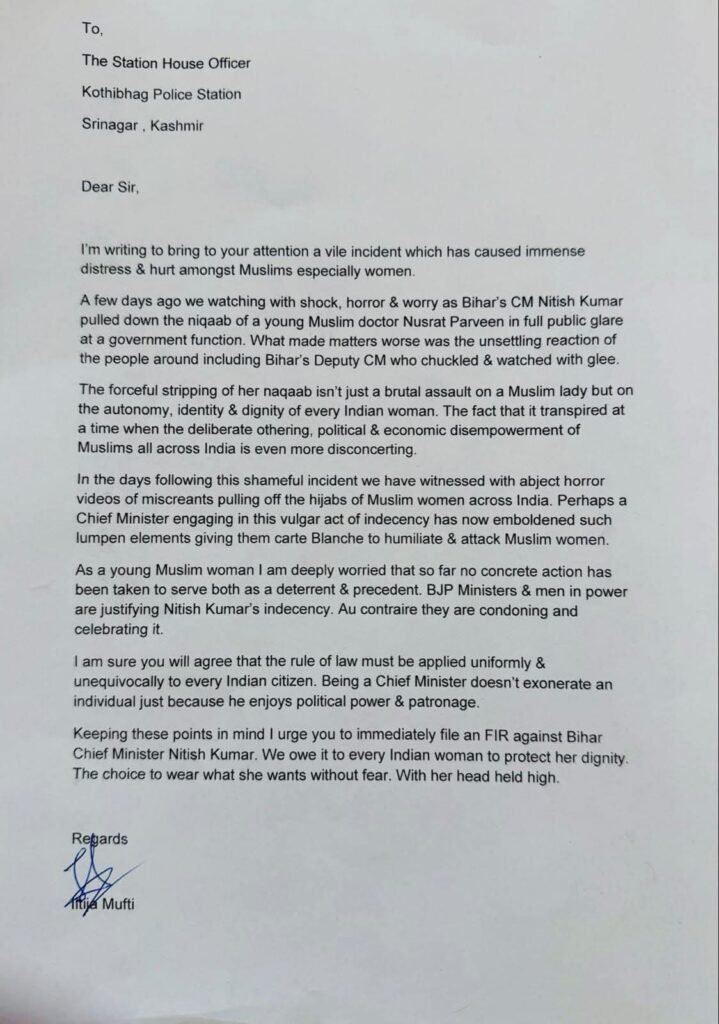 PDP files a complaint against Bihar CM Nitish Kumar at Police Station, Kothibagh in Srinagar Diplomat Digital 2 months ago