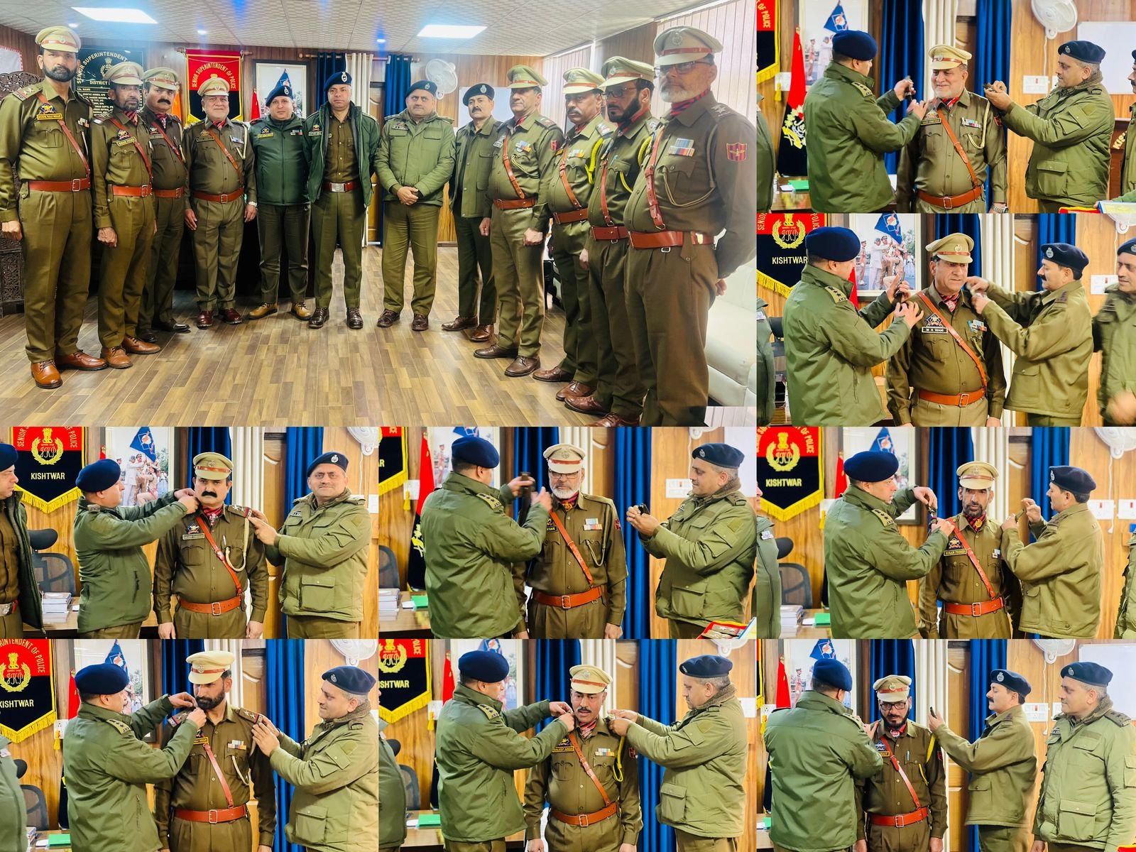 The ceremony was presided over by SSP Kishtwar Javaid Iqbal Mir who, along with Addl. SP (PC) Kishtwar and SDPOs, adorned the newly promoted officers with their ranks.