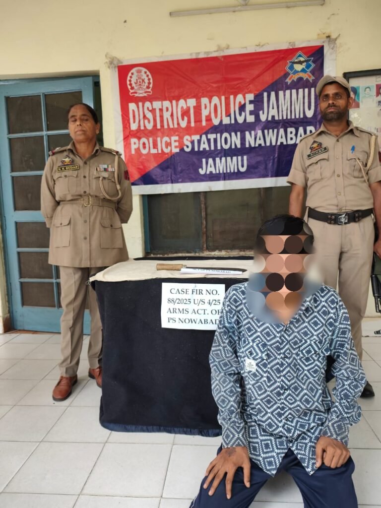 Jammu: DD, As part of enhanced security arrangements ahead of the forthcoming Shri Amarnath Ji Yatra–2025, Nowabad Police today claimed to have arrested a man with a sharp edged weapon during a hotel checking drive.