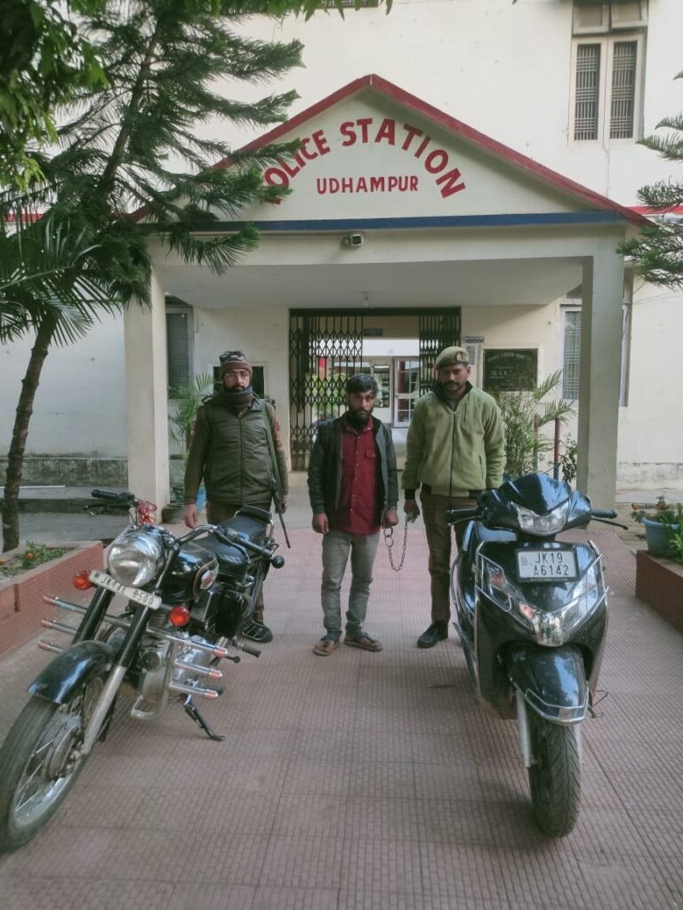 UDHAMPUR:DD – The Udhampur Police successfully arrested a vehicle lifter and recovered two stolen vehicles, including a Bullet motorcycle and a scooty, following swift action on a theft complaint.