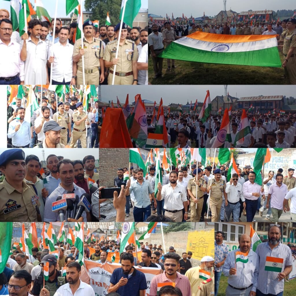 Handwara,DD, As part of the ongoing Har Ghar Tiranga and Meri Maati Mera Desh campaigns under the “Azadi Ka Amrit Mahotsav” initiative, Handwara Police, in collaboration with the Civil Administration, today organized a grand Tiranga Rally to mark the 79th Independence Day celebrations.