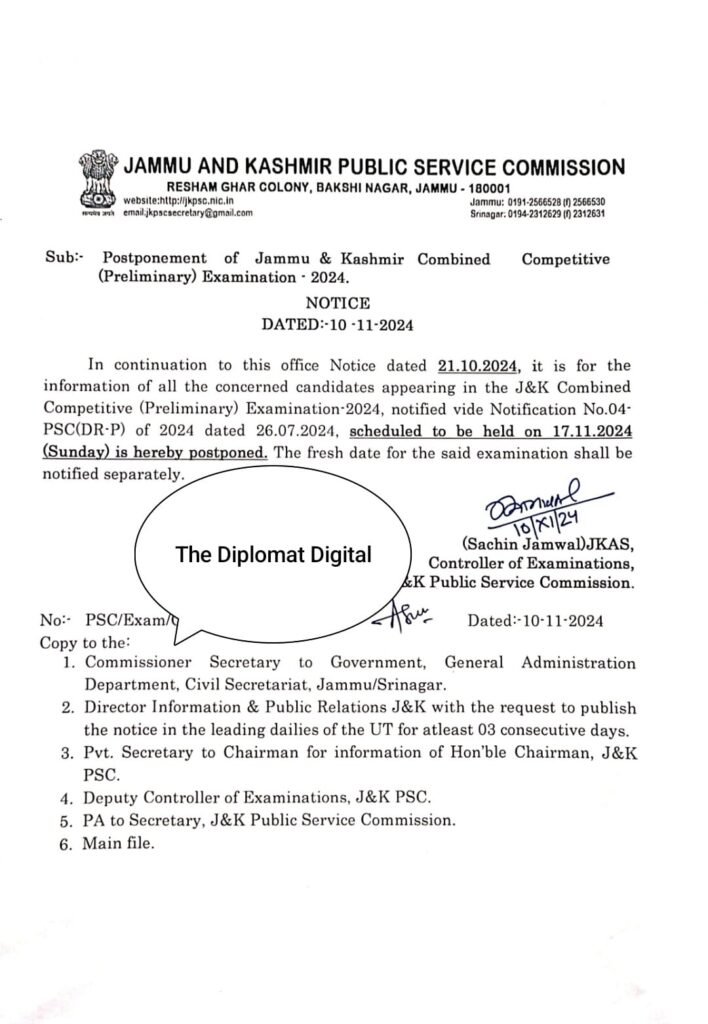 Postponement of J&K Combined Competitive (Preliminary) Examination -2024