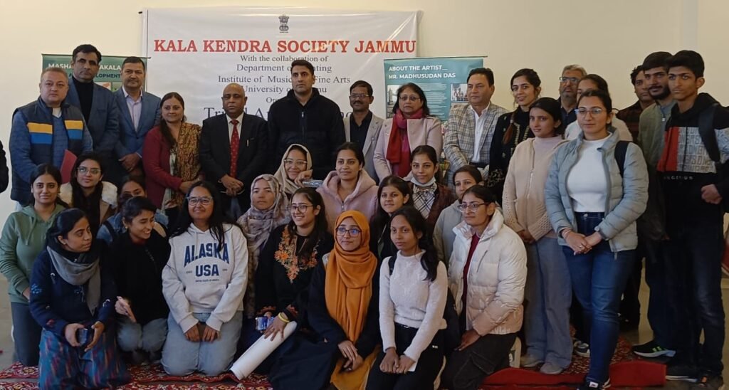Dr. Javaid Rahi, Secretary of Kala Kendra Society, informed that the event saw participation from 30 Fine Arts students. The workshop aimed to inspire the young generation to focus on Tribal Art alongside other contemporary forms. Renowned artist Madhusudan Das from Delhi was invited to train the participants in the nuances of Tribal Art.