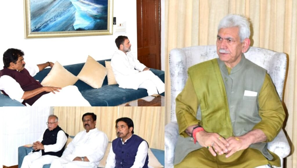 SRINAGAR, DD, The Leader of Opposition in Lok Sabha, Shri Rahul Gandhi, called on Lieutenant Governor Shri Manoj Sinha today at Raj Bhavan. He was accompanied by Congress MP Shri KC Venugopal, Congress MLAs Shri Ghulam Ahmad Mir and Shri Tariq Hameed Karra and Rajya Sabha MP Dr Syed Naseer Hussain. The discussions covered various aspects of heinous terror attack in Pahalgam.
