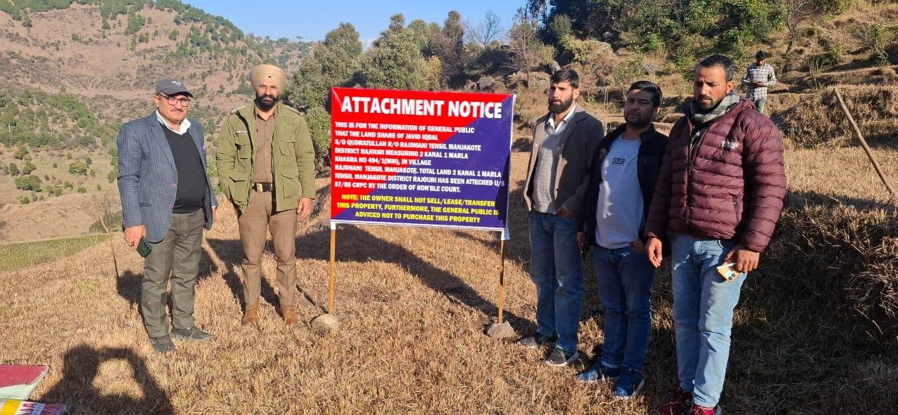 The Land measuring 2 kanals and 1 marla, located in village Rajdhani, was attached following orders obtained from the Hon’ble Court, Rajouri. This action was executed in the presence of an Executive Magistrate and as per the due legal process.