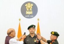 Lt Col (Hony) Neeraj Chopra is an epitome of perseverance, patriotism and the Indian spirit of striving for excellence: Rajnath Singh Diplomat Correspondent New Delhi,DD, Raksha Mantri Rajnath Singh formally conferred the gleaming insignia of Honorary rank of Lieutenant Colonel in the Territorial Army upon star javelin thrower and two-time Olympic medalist Neeraj Chopra during … Continue reading Raksha Mantri formally confers insignia of Honorary rank of Lieutenant Colonel in Territorial Army upon star javelin thrower Neeraj Chopra