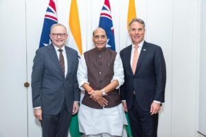 RM Urges International Community to Come Together Against all Forms of Terrorism Diplomat Correspondent New Delhi,DD, Raksha Mantri Rajnath Singh held a wide-ranging bilateral meeting with the Deputy Prime Minister and Minister for Defence of Australia, Richard Marles, in Canberra on October 09, 2025, during his official two-day visit to Australia. The meeting marked five … Continue reading Raksha Mantri holds Bilateral Meeting with Australian Counterpart in Canberra