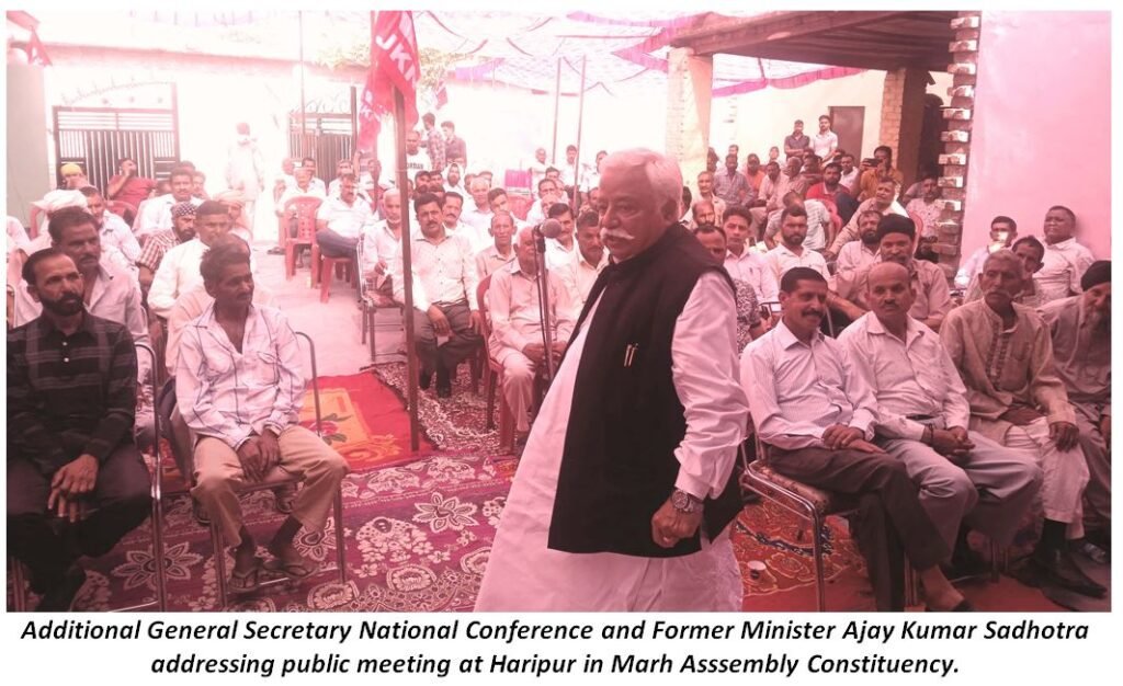 Addressing a public meeting at Haripur in Marh Assembly Constituency which was organised by Sh. Baru Ram Bhagat Ex-Sarpanch District Vice President Rural Jammu, Mr. Sadhotra said that BJP’s continued attempts to exploit religious sentiments by playing the Hindu card and targeting minorities were not just politically unethical,