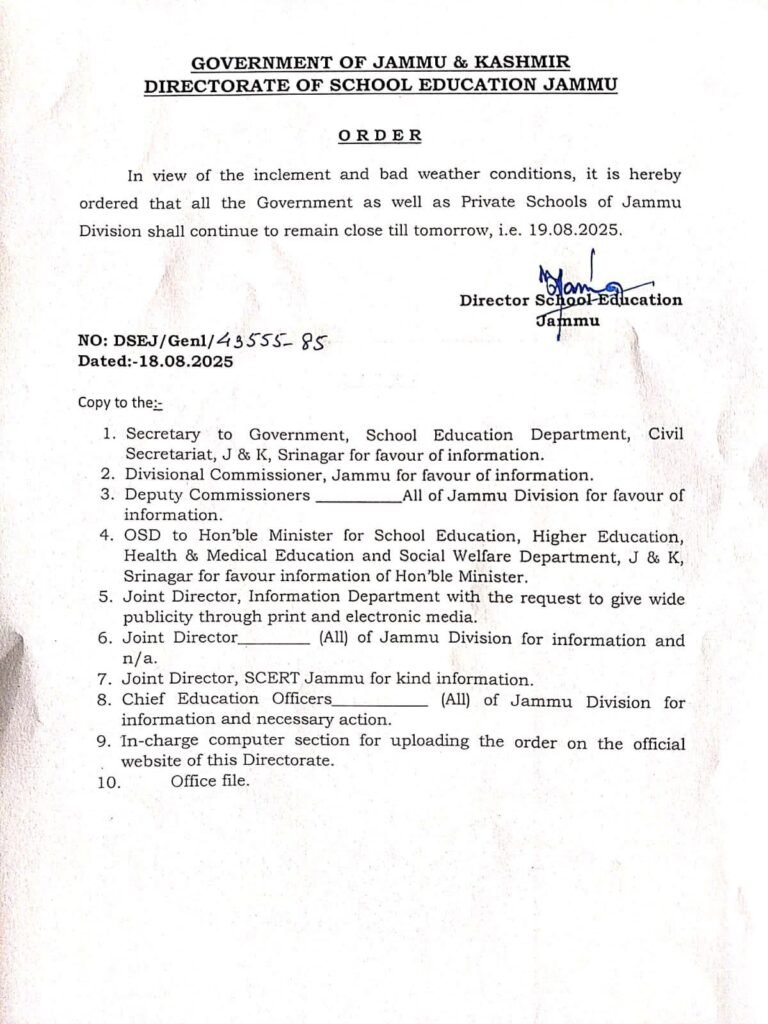 Schools to remain closed on August 19, 2025.