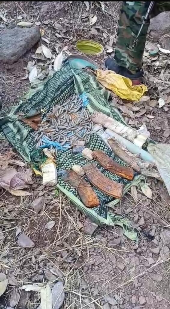 During the searches, the security forces busted a hideout, and recovered four rusted magazines, including one filled and another empty; 268 rounds of AK-47 rifle, 4 UBGLs, and 4 packets of detonators.