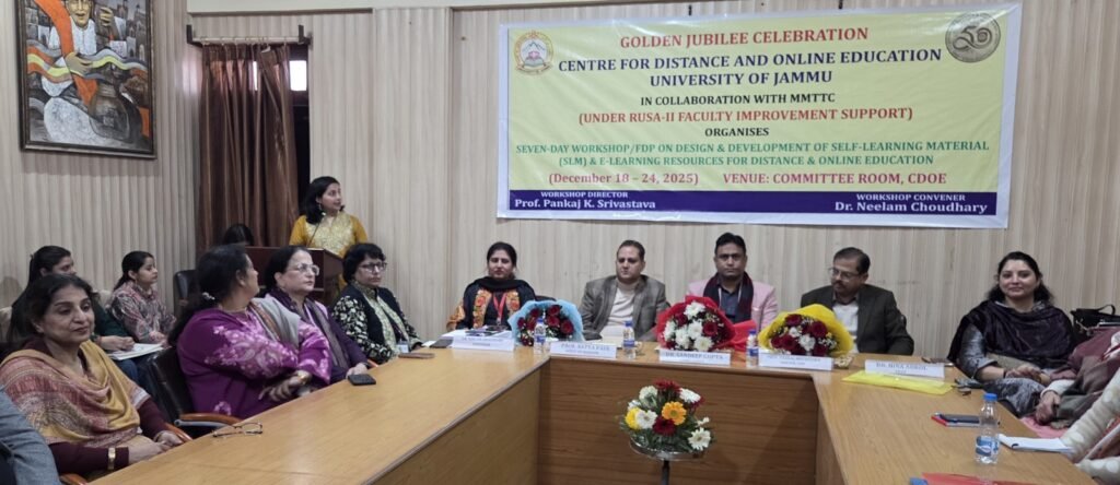 Jammu: The Seven-Day Workshop on Design and Development of Self-Learning Material (SLM) and E-Learning Resources, organized by the Centre for Distance and Online Education (CDOE), University of Jammu.