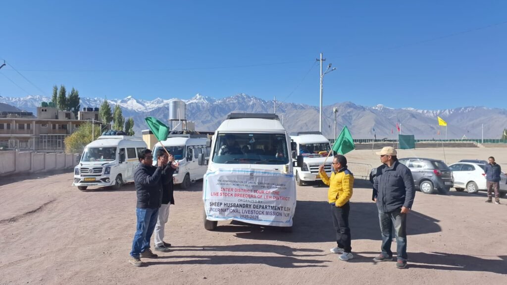 Leh:DD, The Sheep Husbandry Department, Leh, today flagged off a group of 40 livestock owners from various villages of Leh district for an inter-district exposure tour to Kargil District. The tour, organized under the National Livestock Mission (NLM) Scheme, will take the participants to Drass, Kargil, and Zanskar.