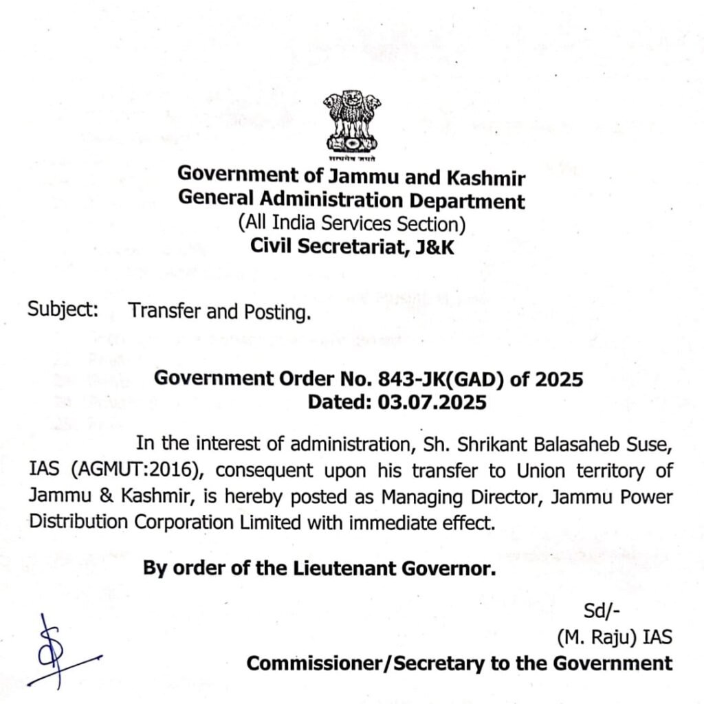 Shrikant Balasaheb Suse (IAS) is a new MD, Jammu Power Distribution Corporation Limited (JPDCL). Diplomat Digital 8 months ago