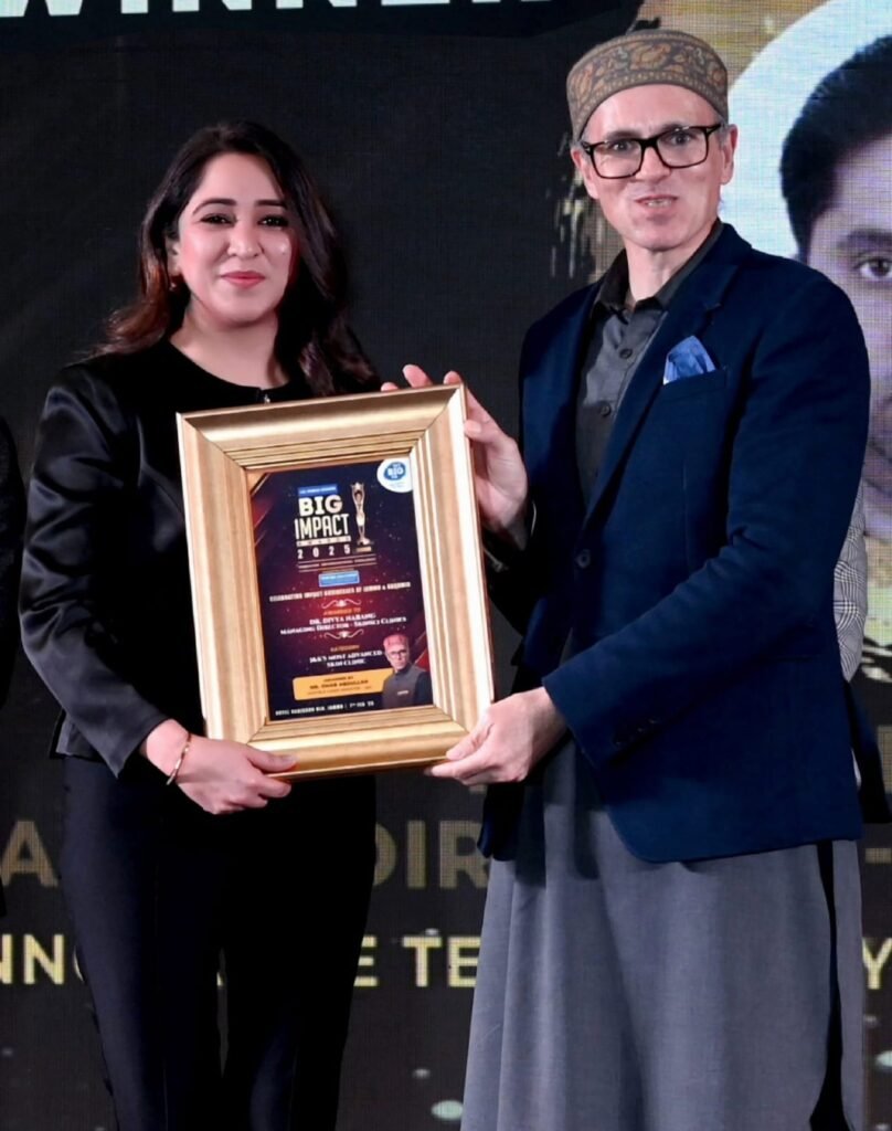 Jammu: DD, Dr Divya Narang, Founder and Medical Head of SKINSCI Clinics, Channi Himmat, Jammu, was awarded the title of The Most Advanced Skin Clinic in J&K by Honourable CM Omar Abdullah at the Big Impact Awards 2025, held in, Jammu.