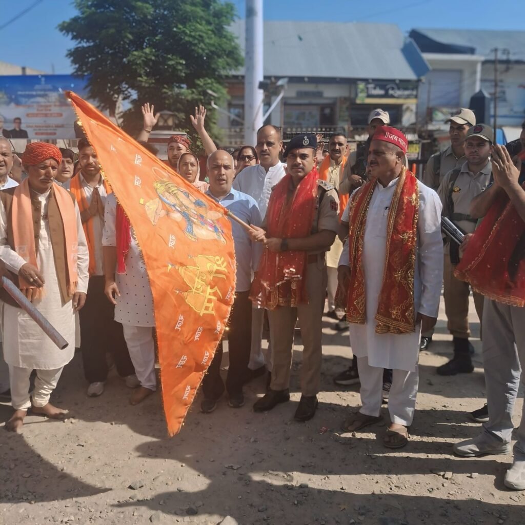 Kishtwar, DD, The annual and sacred Charri Chandi Yatra (Mindal) commenced with great devotion and enthusiasm from Sarkoot Mandir, Kishtwar. The yatra was ceremoniously flagged off by Senior Superintendent of Police Kishtwar, Shri Naresh Singh-JKPS, in the presence of Yatra organisers, police officers, and a large gathering of devotees.