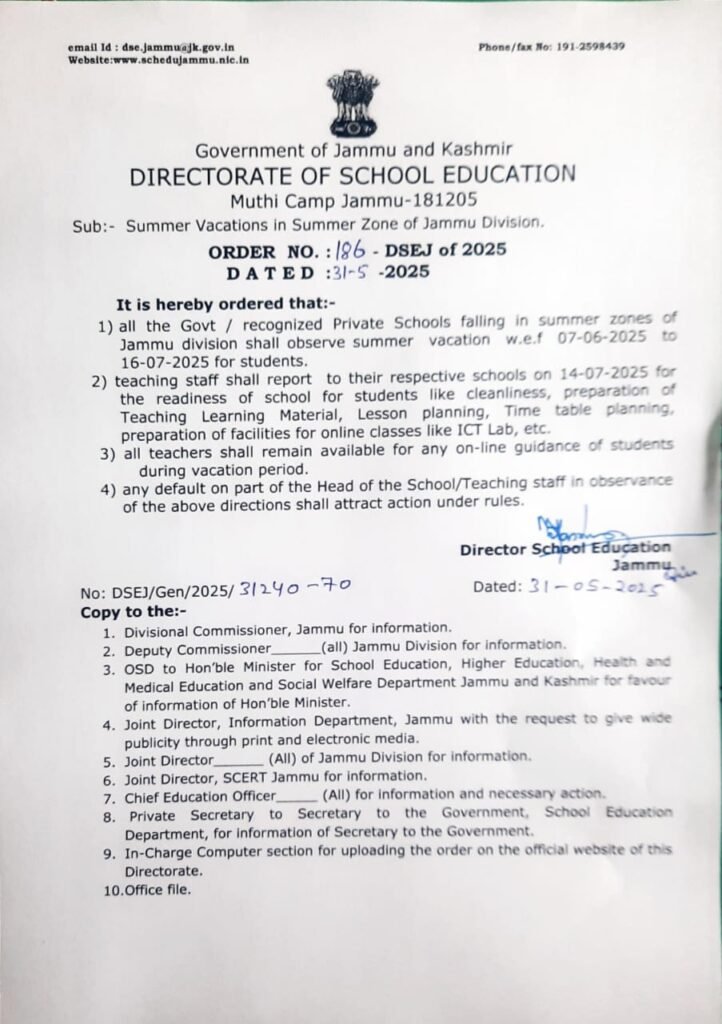Summer vacations in summer zone of Jammu Division