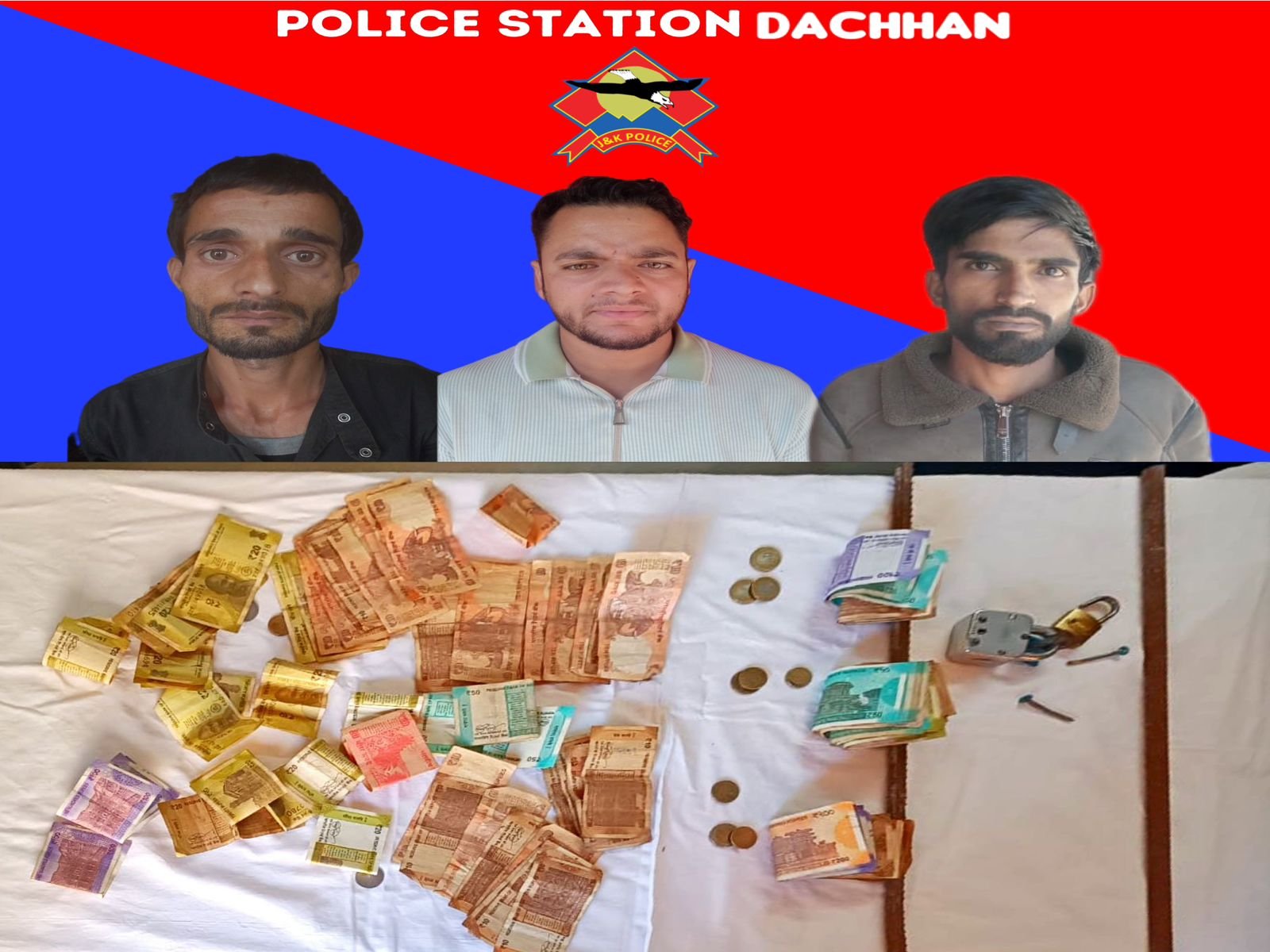 Kishtwar,, (TDD),In a major breakthrough, district Police Kishtwar successfully busted a gang of burglars responsible for a series of thefts at multiple religious places in Dachan.