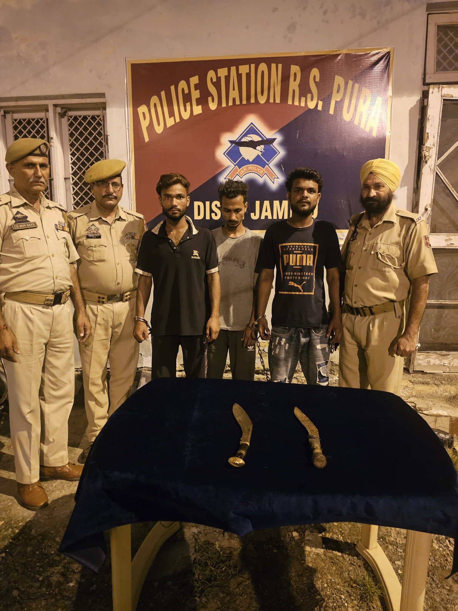JAMMU: TDD,Police today claimed to have arrested three persons with sharp edged weapons in R. S. Pura.