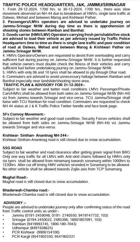 JammuKashmir Less than 1 min.Read Traffic Police Headquarters Jammu and Kashmir By Diplomat Digital December 30, 2024 FacebookTwitterPinterestWhatsApp Post Views: 177 Hot this week Kashmir Kulgam Police Attaches Property of Detained Drug Peddler/Supplier under NDPS Act October 15, 2025 0 Diplomat Correspondent Kulgam: DD, In a major action against drug... Jammu Govt Declares Pooja Holidays from Oct 19-23 for Schools in Jammu Division October 15, 2025 0 Diplomat Correspondent Jammu: DD, Director School Education Jammu has ordered... Kashmir Anantnag Court Convicts Man in POCSO, Rape Case; Sentencing on Oct 22 October 15, 2025 0 Diplomat Correspondent Srinagar: DD, A local court in Anantnag on... Kashmir LG meets terror victims in Kupwara October 15, 2025 0 Diplomat Correspondent Srinagar: DD, Lt Governor J&K, Manoj Sinha interacted... Kashmir Srinagar Police Launch Raids on Suspected Terror Associates Across City October 15, 2025 0 Diplomat Correspondent Srinagar,DD: In its sustained efforts to dismantle the... Topics Kashmir Kulgam Police Attaches Property of Detained Drug Peddler/Supplier under NDPS Act 0 Diplomat Correspondent Kulgam: DD, In a major action against drug... Jammu Govt Declares Pooja Holidays from Oct 19-23 for Schools in Jammu Division 0 Diplomat Correspondent Jammu: DD, Director School Education Jammu has ordered... Kashmir Anantnag Court Convicts Man in POCSO, Rape Case; Sentencing on Oct 22 0 Diplomat Correspondent Srinagar: DD, A local court in Anantnag on... Kashmir LG meets terror victims in Kupwara 0 Diplomat Correspondent Srinagar: DD, Lt Governor J&K, Manoj Sinha interacted... Kashmir Srinagar Police Launch Raids on Suspected Terror Associates Across City 0 Diplomat Correspondent Srinagar,DD: In its sustained efforts to dismantle the... Jammu Army Attachment Camp Concludes at Digiana, Jammu 0 Diplomat Correspondent Jammu,DD: An Army Attachment Camp commenced at Digiana,... Jammu Govt of Jammu and Kashmir/ Directorate of School Education 0 National BJP Announces Candidates for Assembly Bypolls in J&K and Other States 0 Aga Syed Mohsin to Contest from Budgam, Devyani Rana... Related Articles Kulgam Police Attaches Property of Detained Drug Peddler/Supplier under NDPS Act Kashmir October 15, 2025 Govt Declares Pooja Holidays from Oct 19-23 for Schools in Jammu Division Jammu October 15, 2025 Anantnag Court Convicts Man in POCSO, Rape Case; Sentencing on Oct 22 Kashmir October 15, 2025 LG meets terror victims in Kupwara Kashmir October 15, 2025 Srinagar Police Launch Raids on Suspected Terror Associates Across City Kashmir October 15, 2025 Popular Categories JammuKashmirChenab valleyLadakhPir PanjalNational Previous articleLieutenant Governor chairs 88th University Council Meeting of University of JammuNext articleCPI(M) Criticizes Removal of Sheikh Abdullah’s Birthday, Martyrs’ Day from Holiday List