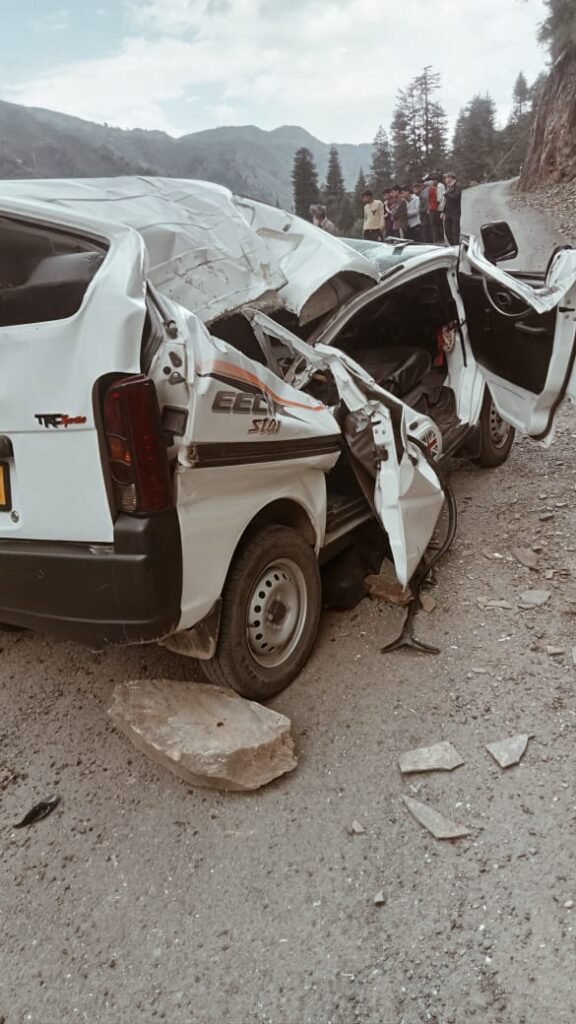 Banihal, (DD): A tragic road accident occurred in the Trana area of Khari in Ramban district when a massive boulder fell onto an Ecco van (registration number JK19 A 6521), leaving one person dead and several others injured.