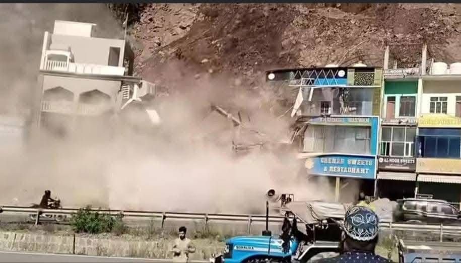 Udhampur: DD, A massive landslide struck the Narsoo-Samroli area along the Jammu-Srinagar National Highway in Udhampur district on Saturday night, causing the collapse of a hotel and several adjoining buildings, officials said.