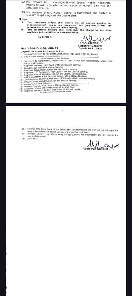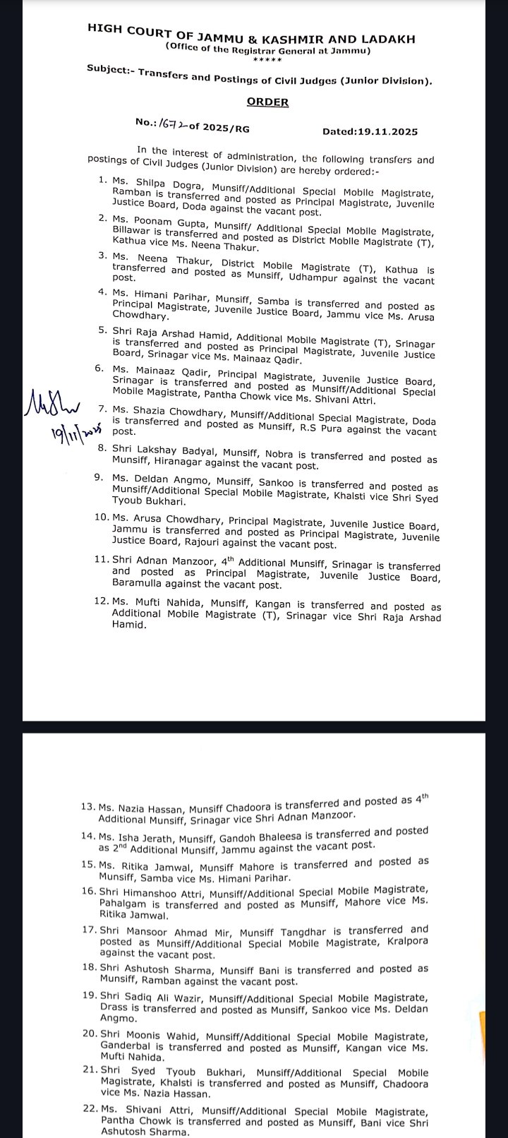 LATEST NEWS Metamorphosis of Mindsets: EXPA Cadet Program at Ek Bharat Shreshtha Bharat Camp Amit mentions Census 2027 a founding pillar of Viksit Bharat in 6th Digital Transformation Summit & Awards Cold Climes, Warm Bonds: EBSB Camp at NCC Training Academy Nagrota Celebrates Unity in Diversity Div Com and IGP Jammu review arrangements at M A stadium Know where the Power to remain shutdown JammuKashmir Less than 1 min.Read Transfers and Postings By Diplomat Digital November 19, 2025 FacebookTwitterPinterestWhatsApp Hot this week Jammu Metamorphosis of Mindsets: EXPA Cadet Program at Ek Bharat Shreshtha Bharat Camp January 17, 2026 0 Diplomat Correspondent Jammu: Stepping into a two-day transformative journey,... India Amit mentions Census 2027 a founding pillar of Viksit Bharat in 6th Digital Transformation Summit & Awards January 17, 2026 0 Diplomat Correspondent New Delhi, Amit Sharma, IAS, Director... Jammu Cold Climes, Warm Bonds: EBSB Camp at NCC Training Academy Nagrota Celebrates Unity in Diversity January 17, 2026 0 Diplomat Correspondent Nagrota: Ek Bharat Shreshtha Bharat Jammu at... Jammu Div Com and IGP Jammu review arrangements at M A stadium January 17, 2026 0 Diplomat Correspondent JAMMU: Divisional Commissioner Jammu, Ramesh Kumar and... Jammu Know where the Power to remain shutdown January 17, 2026 0 Diplomat Correspondent JAMMU, Chief Engineer (Distribution) JPDCL Jammu... Topics Jammu Metamorphosis of Mindsets: EXPA Cadet Program at Ek Bharat Shreshtha Bharat Camp 0 Diplomat Correspondent Jammu: Stepping into a two-day transformative journey,... India Amit mentions Census 2027 a founding pillar of Viksit Bharat in 6th Digital Transformation Summit & Awards 0 Diplomat Correspondent New Delhi, Amit Sharma, IAS, Director... Jammu Cold Climes, Warm Bonds: EBSB Camp at NCC Training Academy Nagrota Celebrates Unity in Diversity 0 Diplomat Correspondent Nagrota: Ek Bharat Shreshtha Bharat Jammu at... Jammu Div Com and IGP Jammu review arrangements at M A stadium 0 Diplomat Correspondent JAMMU: Divisional Commissioner Jammu, Ramesh Kumar and... Jammu Know where the Power to remain shutdown 0 Diplomat Correspondent JAMMU, Chief Engineer (Distribution) JPDCL Jammu... Jammu CBI Arrests Two Public Servants in Bribery Case 0 Diplomat CorrespondentJammu: The Central Bureau of Investigation (CBI) has... Jammu JU organizes General Zorawar Singh Memorial Public Lecture on “China’s Cognitive Warfare Ecosystem: Implications and Response by India” 0 Diplomat Correspondent Jammu: The Department of Strategic and Regional... India Indian Army Signs MOU with Podar Education Network to Support Wards of Soldiers 0 Diplomat Correspondent New Delhi: The Indian Army has signed... Related Articles Metamorphosis of Mindsets: EXPA Cadet Program at Ek Bharat Shreshtha Bharat Camp Jammu January 17, 2026 Cold Climes, Warm Bonds: EBSB Camp at NCC Training Academy Nagrota Celebrates Unity in Diversity Jammu January 17, 2026 Div Com and IGP Jammu review arrangements at M A stadium Jammu January 17, 2026 Know where the Power to remain shutdown Jammu January 17, 2026 CBI Arrests Two Public Servants in Bribery Case Jammu January 16, 2026 Previous articleLG Kavinder chairs 14th State Board for Wildlife MeetingNext articleCooperatives Department Kargil Organises Celebration of International Year of Cooperatives 2025