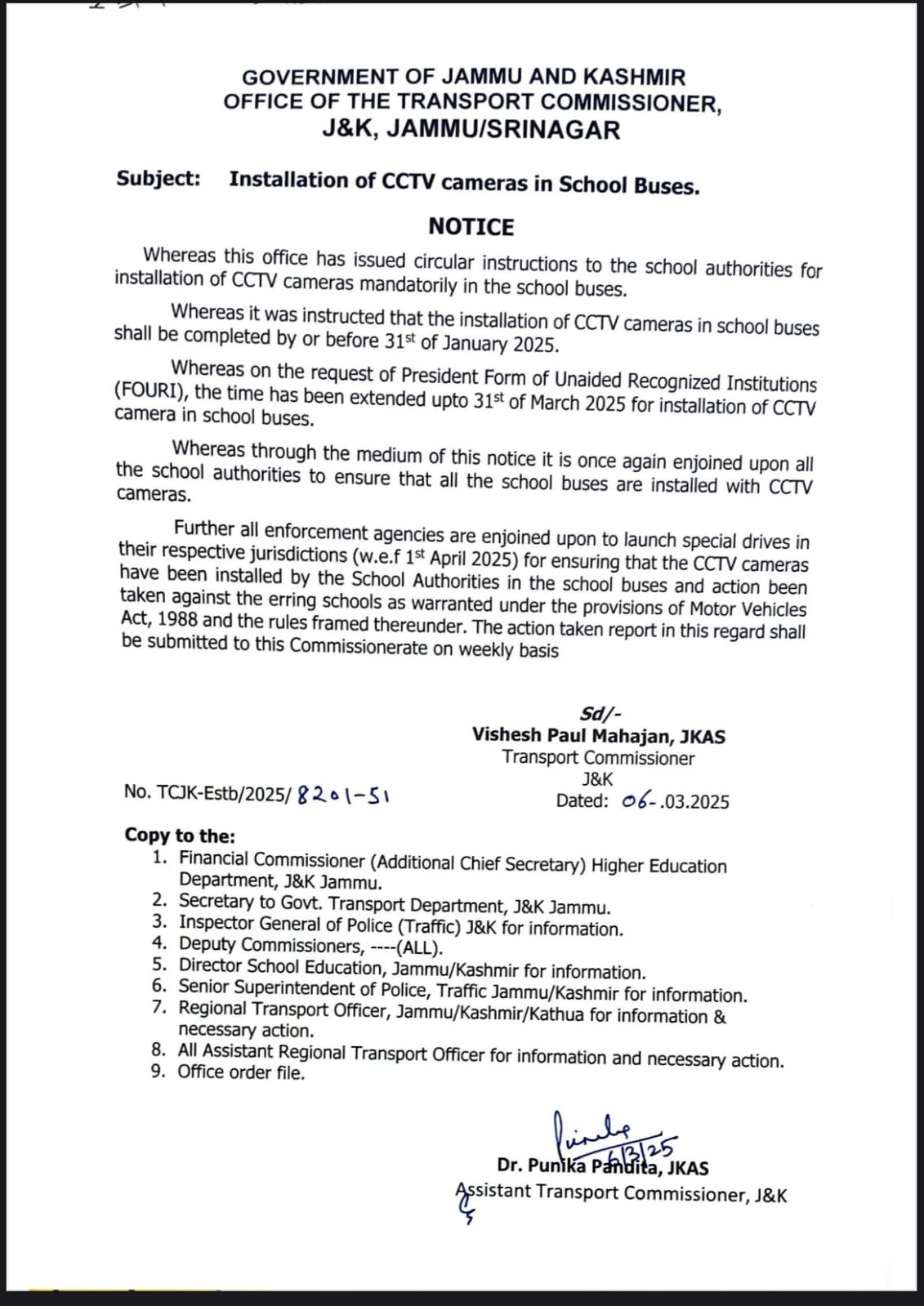 Transport Commissioner directs installation of CCTV cameras in school buses
