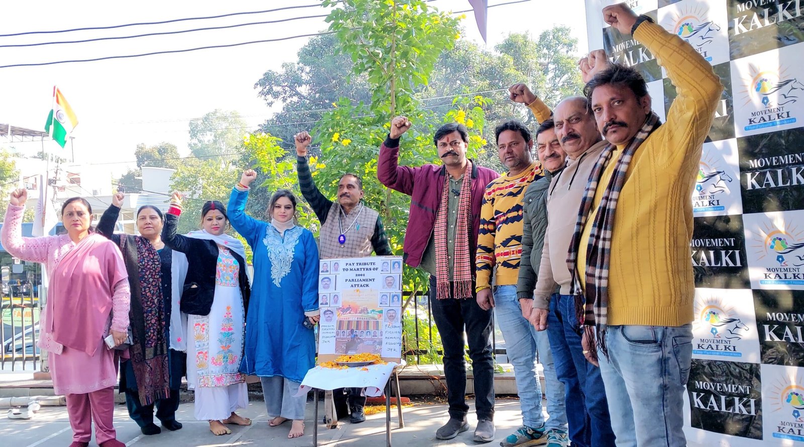 Jammu, TDD,Movement Kalki and the Freedom Fighter Memorial Organization jointly organized a heartfelt program at Amphalla Chowk to honor the martyrs of Parliament. Members from both organizations gathered to pay tribute to the brave souls who sacrificed their lives to safeguard the nation.