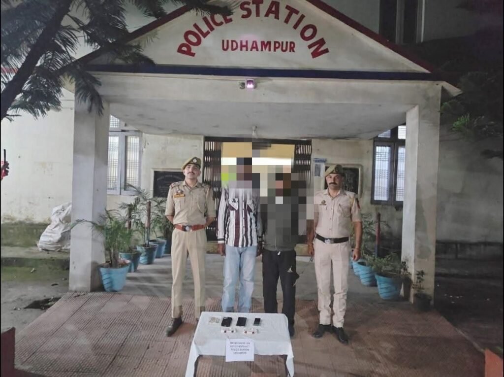 Spokesperson said that a police team of Police Station Udhampur led by its SHO while on patrolling duty near Birma Bridge noticed two persons coming from Supply Morh towards Udhampur city on a scooty bearing registration number JK14L-2202. On seeing the police vehicle the rider stopped at a distance and attempted to turn back, it reads.