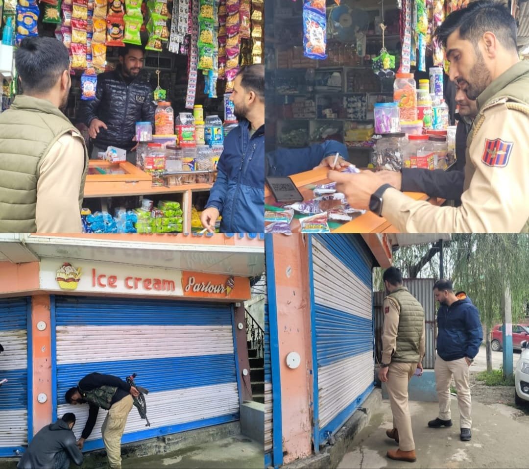 Handwara:DD, In its continued efforts to promote a healthy, safe, and drug-free environment for students, Handwara Police, in collaboration with the Executive Magistrate Handwara, today conducted a special checking drive in Handwara town targeting shops located within a 100-meter radius of educational institutions.