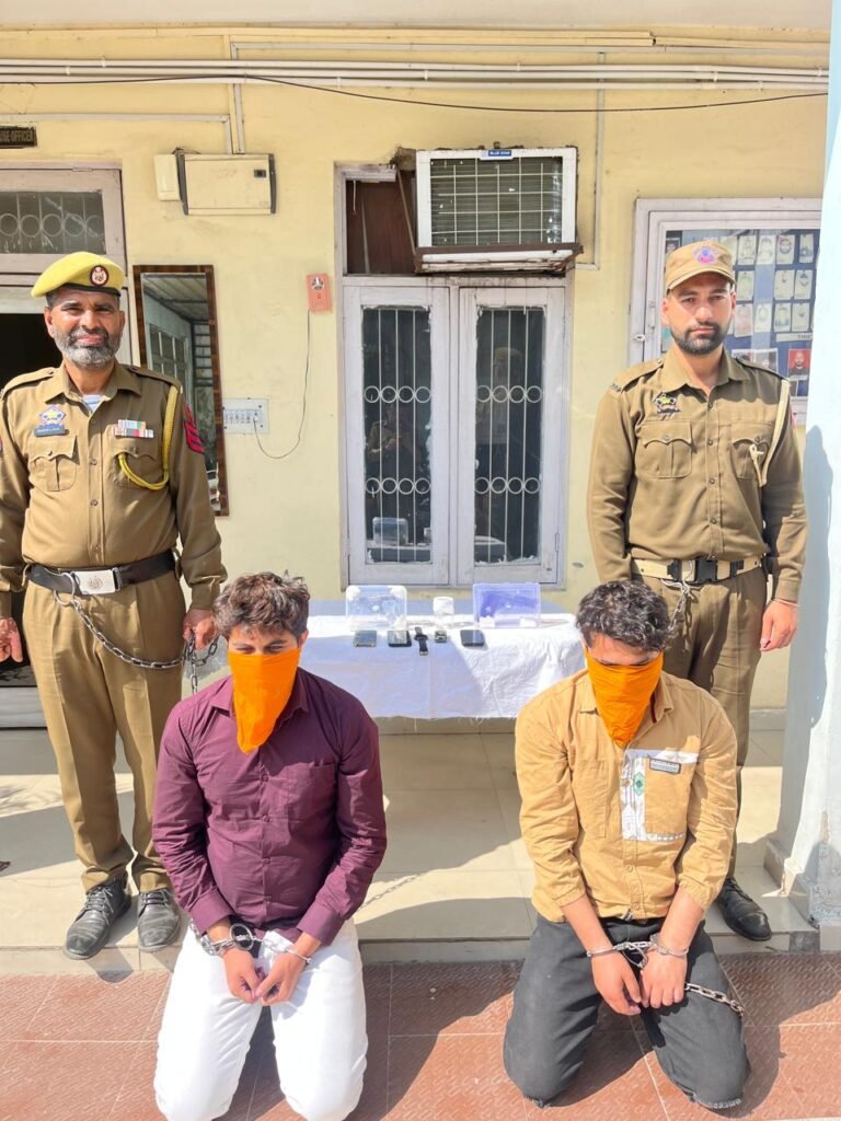Jammu Police team led by SHO Miran Sahib Inspector Jaipaul Sharma under the supervision of SDPO RS Pura and SP Headquarters Jammu, utilizing human and tech int established a surprise naka (checkpoint) on Ring Road in Miran Sahib area to nab the criminals and finally two wanted criminals namely Rajat Raina alias Rishu and Raghunandan Kesar alias Raghu who were traveling in a Thar vehicle bearing registration number JK02DA-2525 were apprehended within hours of the Swaran place incident.