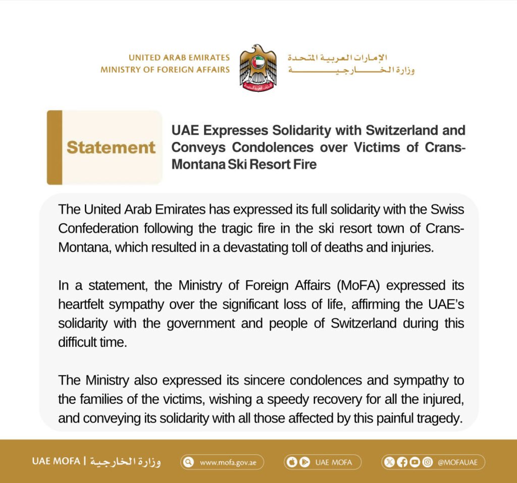 UAE Expresses Solidarity with Switzerland and Conveys Condolences over Victims of Crans-Montana Ski Resort Fire Diplomat Digital 2 months ago