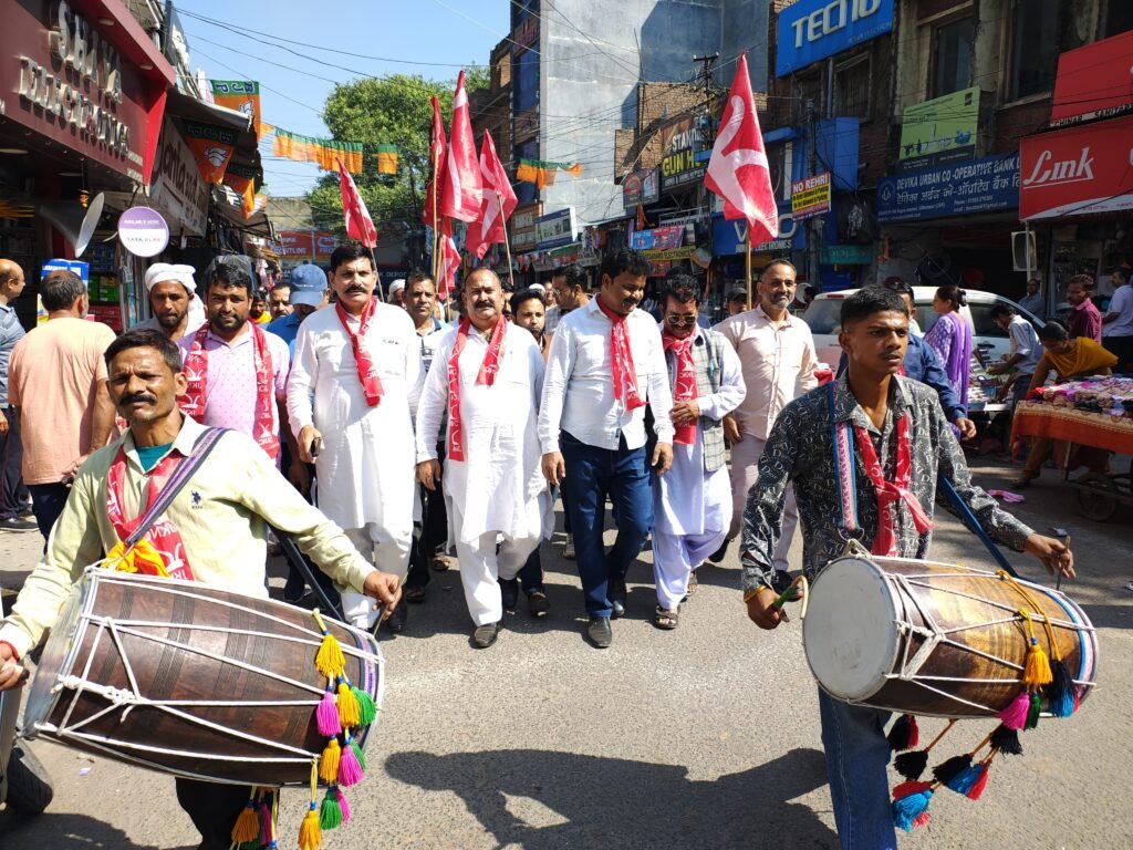 The celebrations commenced at the Mini Stadium, where party members gathered in large numbers. The air was filled with the rhythmic beats of dhols and nagadas (traditional drums), creating an atmosphere of triumph and joy. From the stadium, a massive rally was organized, winding its way through the city’s main intersections and thoroughfares.