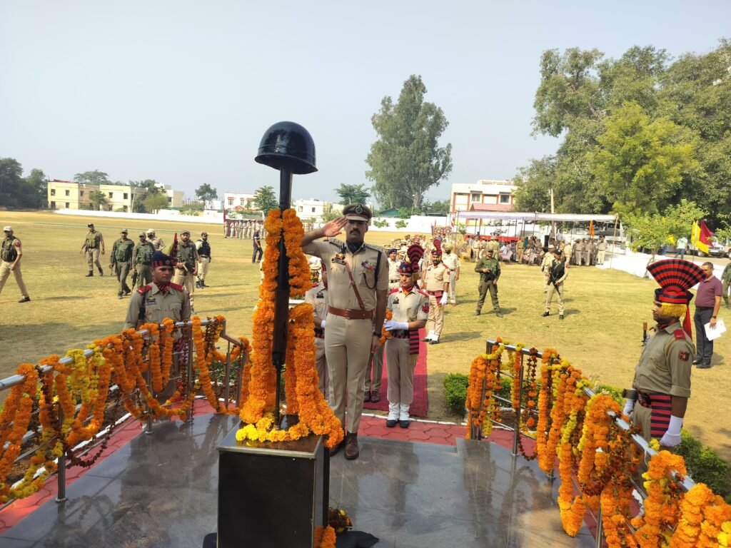 Udhampur :TDD, In a poignant display of gratitude and remembrance, the District Police Line Udhampur today became the focal point of a deeply moving ceremony as it hosted the annual Police Commemoration Day parade. The event, steeped in tradition and reverence, brought together law enforcement officials, families of martyrs, retired personnel, and distinguished members of the community to pay homage to the brave souls who made the ultimate sacrifice in service to the nation.