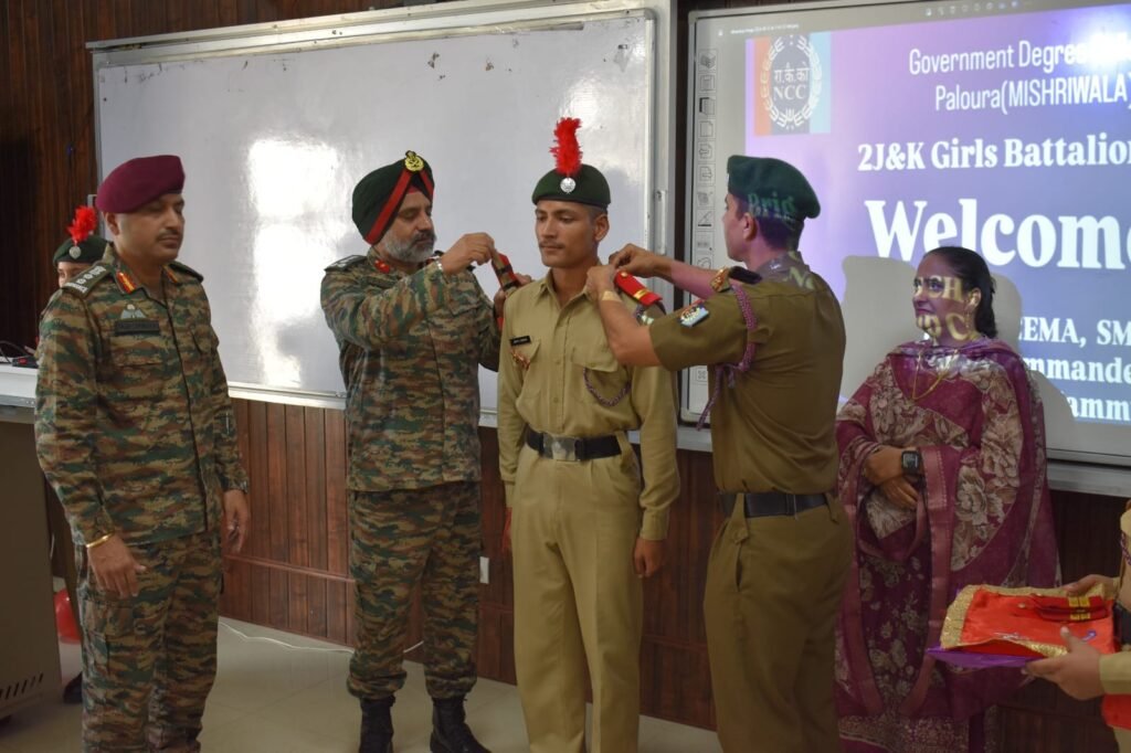 Jammu, TDD,Brigadier PS Cheema SM,VSM Group Commander, NCC Group Jammu accompanied by Col Muneesh Jasrotia, CO 2 J&K Girls Battalion and Col Yash Chibber, J&K Battalion NCC visited BSF Senior Secondary School Paloura & GDC Paloura. He interacted with the Heads of both the Institutes, SW, SD, JW & JD ANOs and the cadets.