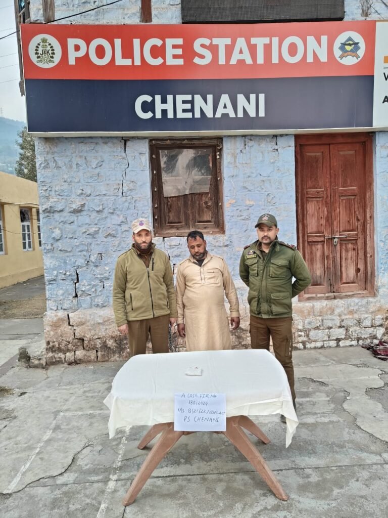 On frisking, 10.02 grams of heroin like substance was recovered from his possession who has been arrested on spot.On this, a case FIR No. 188/2024 under relevant sections of law stands registered at PS Chenani.Further investigation of the case is underway.TDD
