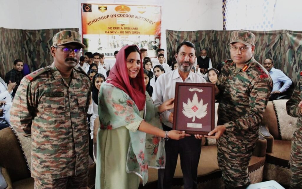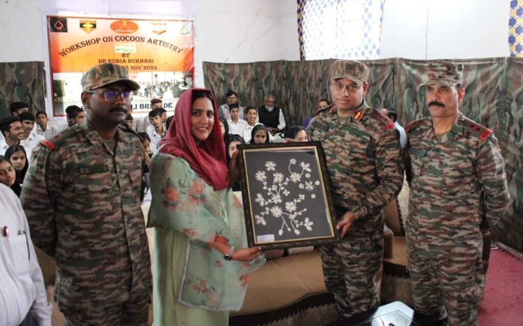 Rajouri ,TDD, In a continuing partnership between the Indian Army and Dr. Rubia Bukhari’s Cocoon Artistry Initiative, a weeklong workshop on cocoon artistry was recently held at Higher Secondary School Chamba Panjgrian in Rajouri district. This initiative, aimed at empowering the youth and women of the twin border districts of Rajouri and Poonch, was conducted in collaboration with Dr. Rubia Bukhari, founder of the Cocoon Artistry Initiative, alongside officials from the Gambir Battalion of Bimber Gali Brigade.