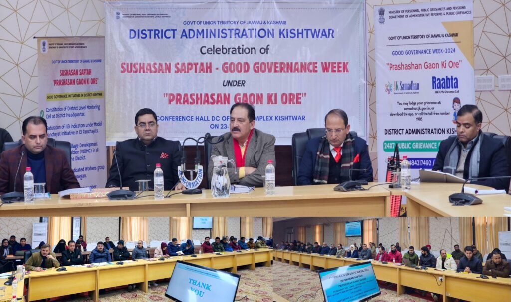 Kishtwar, TDD,The District Administration Kishtwar today organized a workshop as part of the observation of Good Governance Week 2024, “Sushasan Saptah” (Prashasan Gaon Ki Ore), scheduled from 19th December to 24th December in the District Kishtwar.